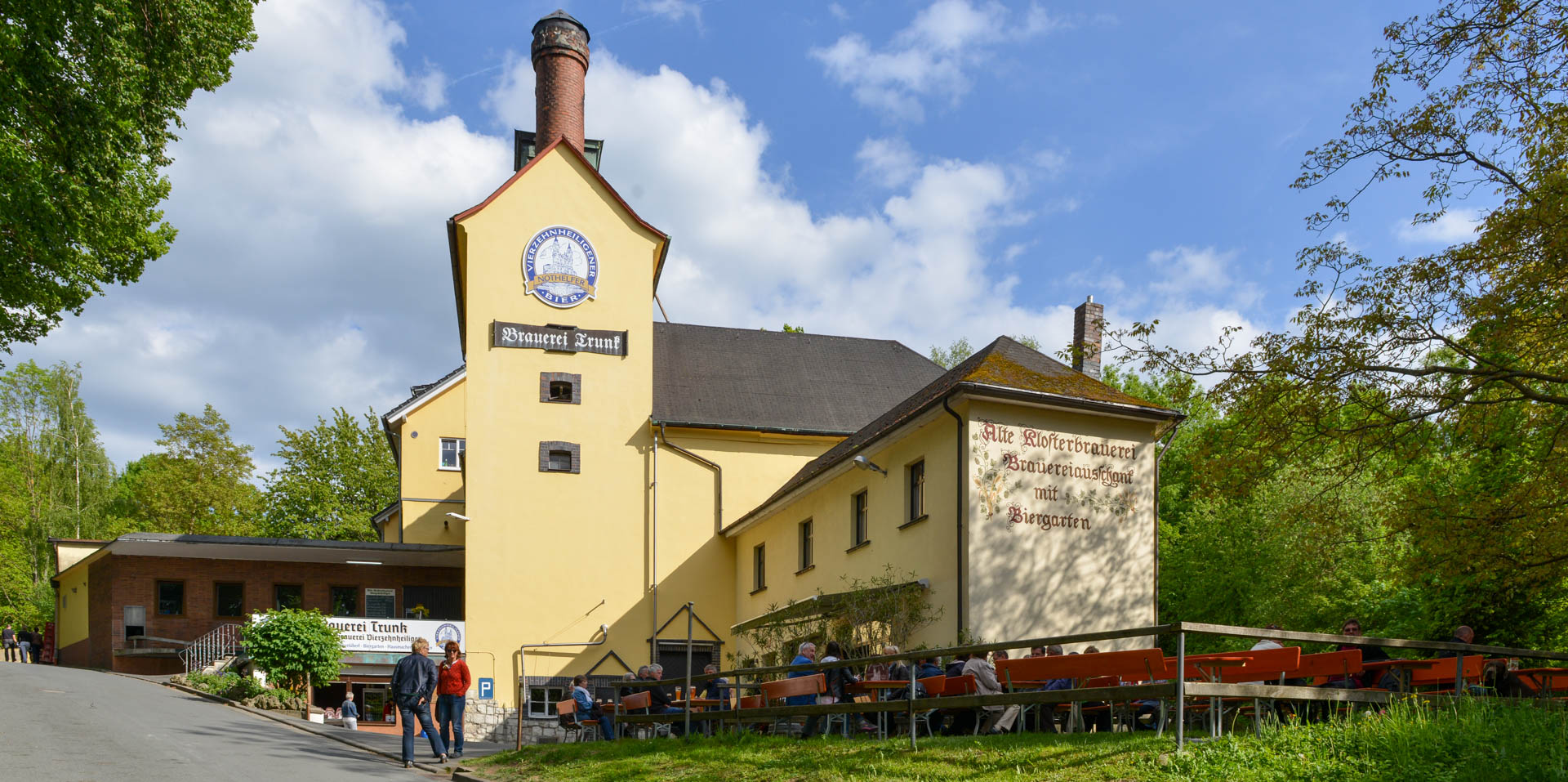 In der Sommerzeit ist Hochsaison. Denn der Biergarten im Schatten der Kirchtürme und umrandet von hohen Bäumen zieht die Biergenießer aus der ganzen Region. Im Herbst sind es viele Wallfahrer, die aus allen Richtungen über den Staffelberg nach Vierzehnheiligen wandern.